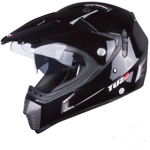 Tuzo Adventure / Dual Sport Motorcycle Crash Helmet ECE Approved In Gloss Black In XS, Medium, Large & XL