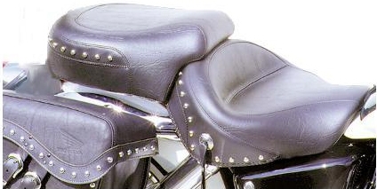 Mustang's two-piece touring seats for the VT1100 Shadow Aero will provide both driver and passenger with ultimate comfort. The deeply pocketed front bucket measures 17" across. The rear seat is 13" wide and utilizes internal steel support wings for all day comfort. All styles feature simulated leather skirts and braided edge trim. All models will mount in stock location.