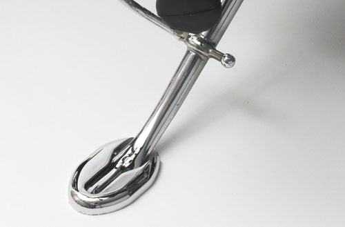 This clever pad slides over the stock sidestand foot and is secured with a setscrew. It has over two times the area of the original.