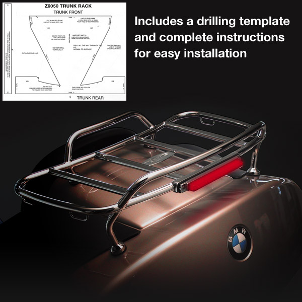 Hand crafted chrome brazed steel tubing rack. Rear brake LED light with BMW connectors.