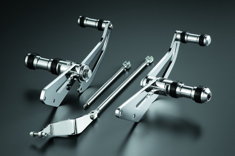 Polished, high strength, aluminium alloy, beautifully chromed and exceptionally designed, with fold up, billet aluminium footpegs. Includes all necessary mounting hardware for a perfect fit and a quick installation. Moves Drivers foot position 80mm forward