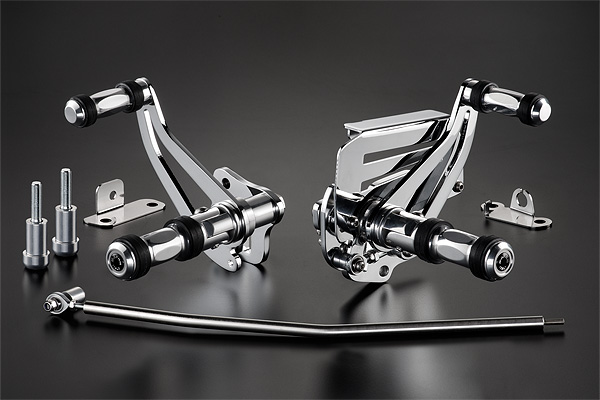 Polished, high strength, aluminium alloy, beautifully chromed and exceptionally designed, with fold up, billet aluminium footpegs. Includes all necessary mounting hardware for a perfect fit and a quick installation. Moves Drivers foot position 100mm forward