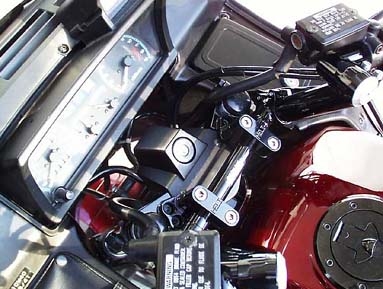 CNC aluminum adapters are installed in place of the stock clip-ons, allowing installation of the Multi-Tour Sport Heli Bars. Handlebars adjust up to 3" more rearward than stock position, dramatically improving comfort. Telescopic for a wide range of angle changes. Stock cables, hydraulic lines and bar end weights are retained (only the 1986 Concours requires a longer brake hydraulic line).