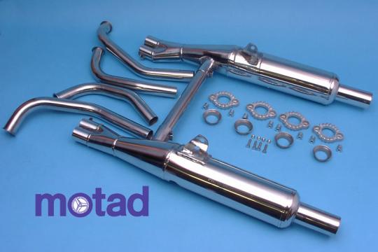 A complete replacement system,the downpipes,silencers and silencer internals are all manufactured out of Grade 18/8 Stainless Steel GREAT SOUND NO REJETTING AND OPTIONAL TIPS DOWN TURN WE STOCK IN CHROME AT £65 PAIR AVAILALBLE TOO-